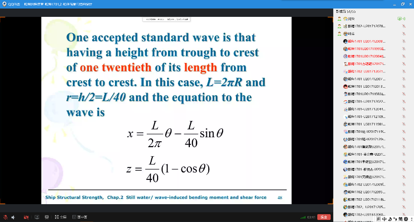 《船舶操纵与摇摆》课程中,邱磊老师授课幽默风趣,通过播放教学视频让同学们对知识理解更加深刻,将知识点作为课后作业,即起到了巩固知识的作用,又帮同学们梳理了要点。