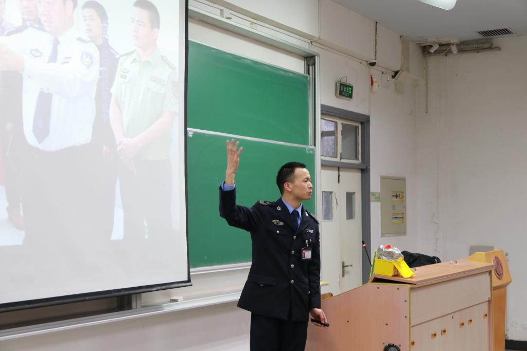 王好教员结合近年来发生的火灾案例,以视频、图片及文字的形式,阐述了普及消防安全知识、提升消防意识的重要性。同时从“防火”、“灭火”、“逃生”、“自救”四个方面详细介绍了火灾的形成过程、自救逃生的方法以及灭火器的种类和操作方法等一系列消防安全知识。为便于大家理解和掌握灭火器和面罩的使用方法,王好教员准备了灭火器和逃生面罩以及求生工具,在台上亲自演示每项工具的正确操作方法。在提问答疑环节,徐俊英老师咨询私家车火灾逃生的方式,王好教员从如何破窗逃生方面做了详细演示和解答。