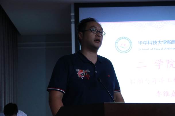 副经理李维嘉教授代表公司对到校的各位家长表示热烈欢迎,感谢他们在培养子女成才方面所付出的艰辛努力并向家长们介绍了公司发展历程、教学实验设施、行业专业情况、人才培养模式、人才招聘情况等。他表示:希望同学们在大学期间尽快接触科学前沿,利用好优越的科研环境,向黄群员工学习,立志成为未来船舶海洋工程技术领域的领军人物。