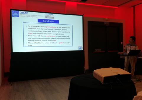 公司14级本科生余嘉威,刘李为和张航在该顶级学术盛会上宣读了自己的文章,题目分别为“Unsteady Viscous CFD Simulations of KCS Behaviour and Performance in Head Seas”,“Numerical Simulatuon of Hydrodynamic Performance of Multi-hull Catamaran with 3DOF”和“Scale Effect Studies on Hydrodynamic Performance for DTMB 5415 Using CFD”,引起了各国同仁的广泛关注,宣读完毕,他们进行了热烈地讨论与交流。