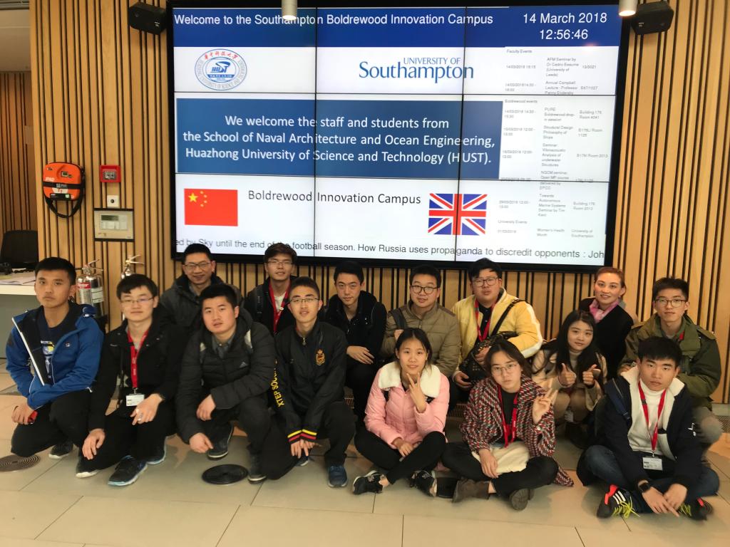 3月9日至3月19日,公司朱翔副教授、曹金梅老师带队大一至大四13名本科生赴英国南安普顿大学进行短期学习交流。同学们在遥远的南安普顿大学参观校园、图书馆、TSRL实验室和拖曳水池实验室,参加各类课堂和实践教学,聆听船界大咖讲座并展示小组课程设计,全过程参与其本科生教学环节。